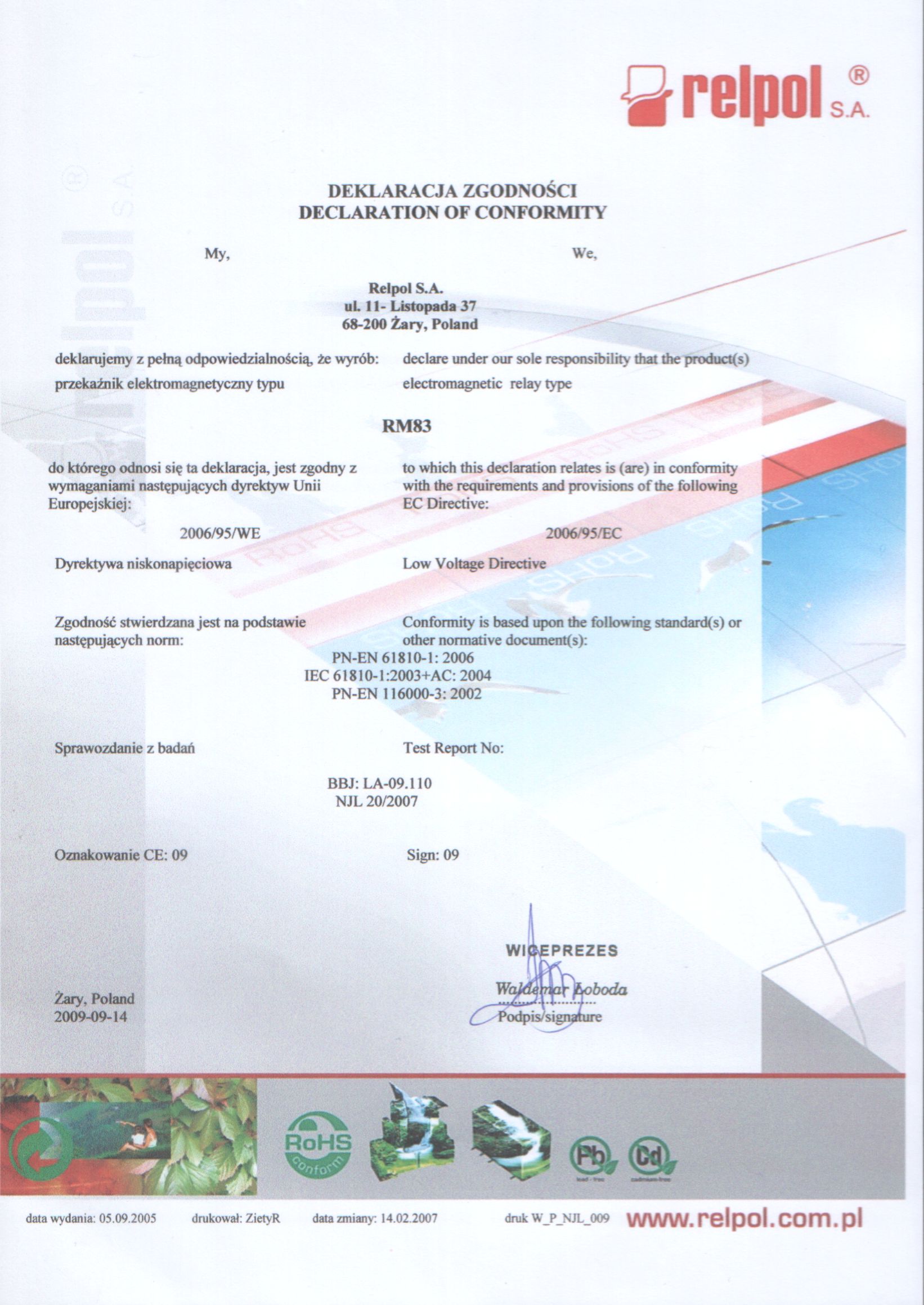 Przekaźnik elektromagnetyczny RM83-1011-25-1110 miniaturowy, do obwodu drukowanego i gniazda wtykowego. Raster 5 mm. Wysokość 25,5 mm. Wyjście: 1P - jeden zestyk przełączny - wyprowadzenia: 11(7)/21(4)-12(6)/22(3)-14(8)/24(5); AC1 - 16 A / 250 V; DC1 - 16 A / 24 V. Wejście / cewka - wyprowadzenia: A1(1) - A2(2), napięcie zasilania Un - 110 V DC. Wymiary: 29,5 x 13,1 x 25,5 mm. Materiał styków: AgCdO. IP 40. Opcje montażu gniazd: EC50,GD50, PW80 - do druku. Uwaga: w przekaźniku są galwaniczne połączenia wyprowadzeń 11 z 21, 12 z 22 oraz 14 z 24.