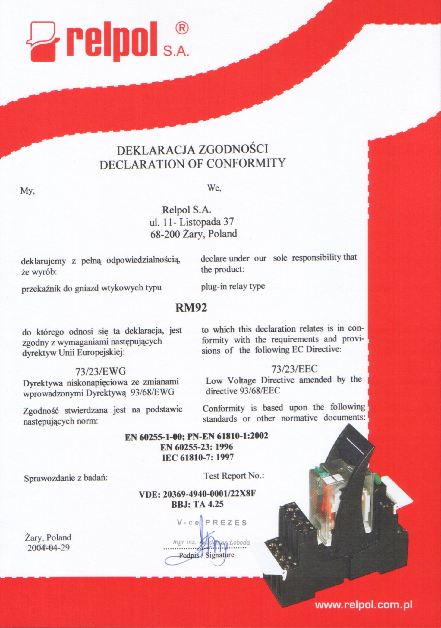 Przekaźnik elektromagnetyczny RM92-1021-25-1024 miniaturowy, do obwodu drukowanego. Wysokość 26 mm. Wyjście: 1Z - jeden zestyk zwierny - wyprowadzenia: 11(4)-14(5); AC1 - 8 A / 250 V; DC1 - 8 A / 24 V. Wejście / cewka - wyprowadzenia: A1(1) - A2(2), napięcie zasilania Un - 24 V DC. Wymiary: 28 x 12,5 x 26 mm. IP 40. Materiał styków: AgCdO. Bezpośredni montaż na druku - PCB lub w gniazdach wtykowych na druk - EC35, GD35.