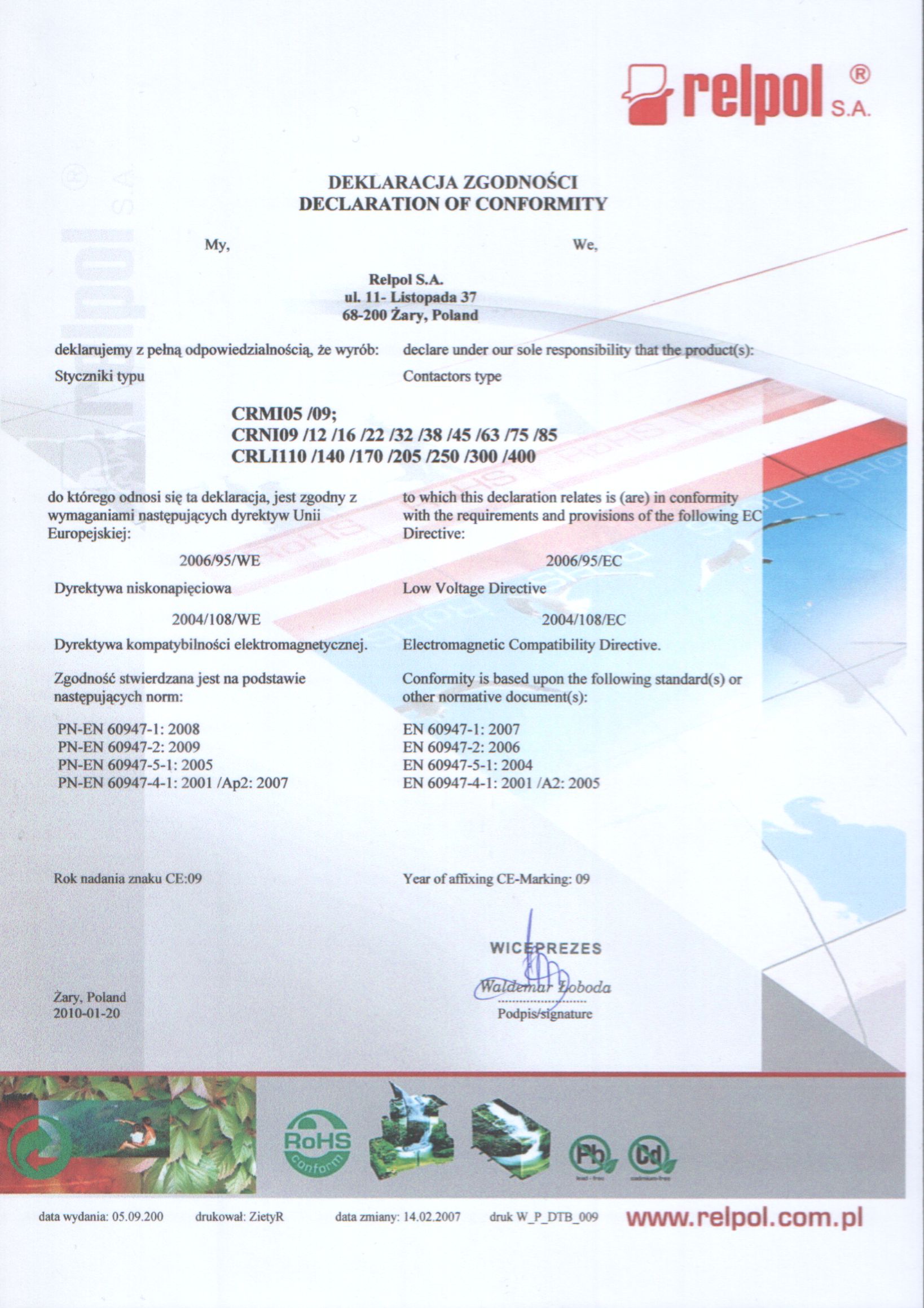Stycznik 3-biegunowy CRNI32-30-00-A110 bieguny: L1-T1, L2-T2, L3-T3. Ie: AC3 - 32 A / 380 V (15 kW), AC1 - 55 A / 400 V. Cewka 110 V AC 50 Hz - zaciski: A1 - A2. Wymiary: 103 x 55 x 109 mm. Montaż na szynie 35 mm lub na płycie. Możliwość zamontowania maks. 4 dodatkowych zestyków pomocniczych CRI20-.. (zwiększają wysokość stycznika o 25 mm).